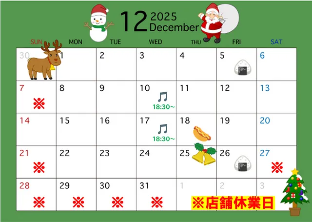 年末年始休業日のお知らせ(2024年12月28日~2025年1月5日)