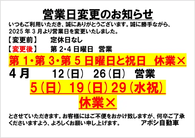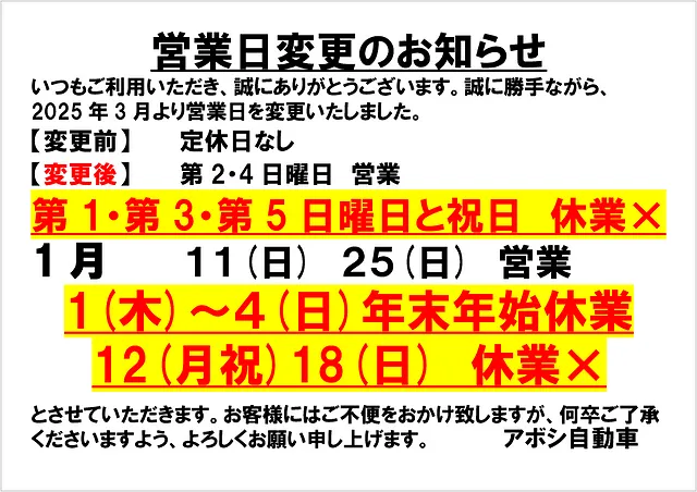 アボシ自動車 079-274-5678/0120-08-6631 9時~18時