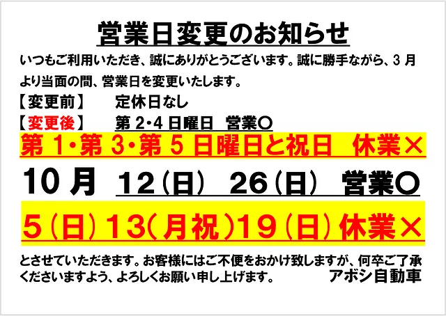 誠に勝手ながら、3月より当面の間、営業日を変更いたします。